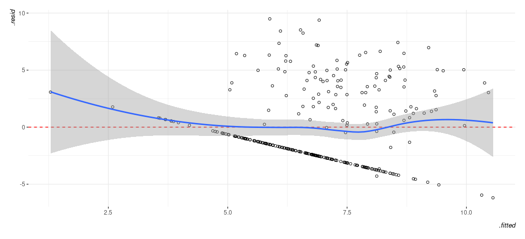 between the LOESS smoother and the flat line at 0. I don’t know if it’s